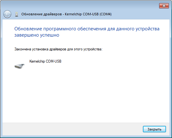 В конце появится сообщение об успешном завершении обновления драйвера.